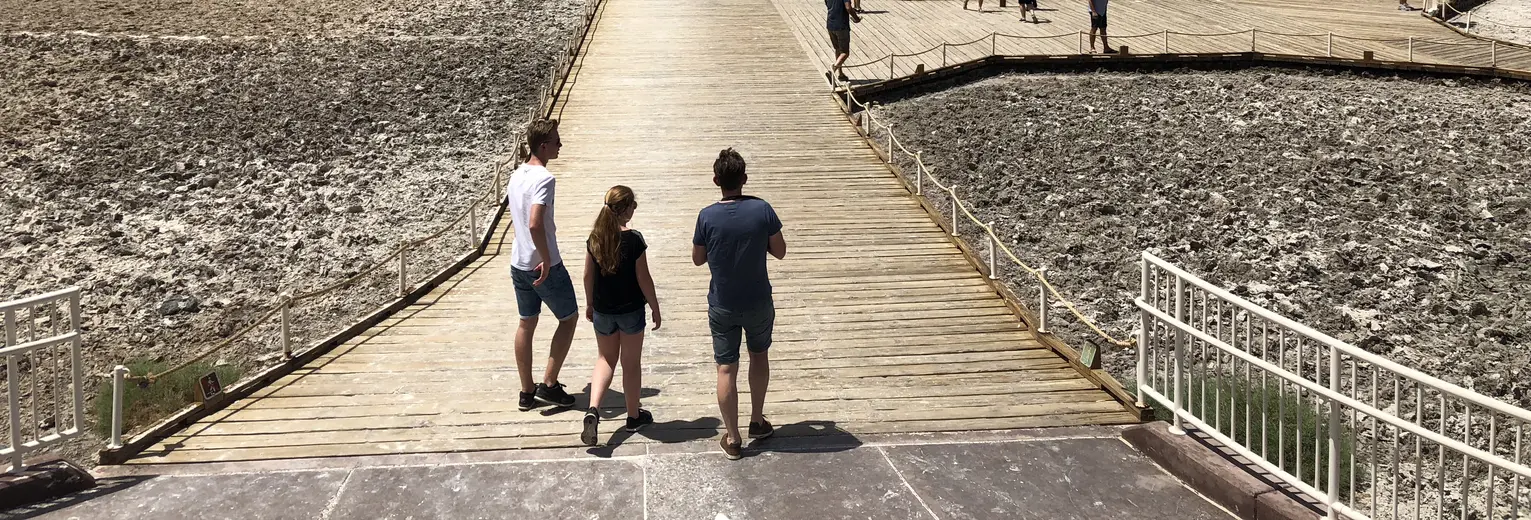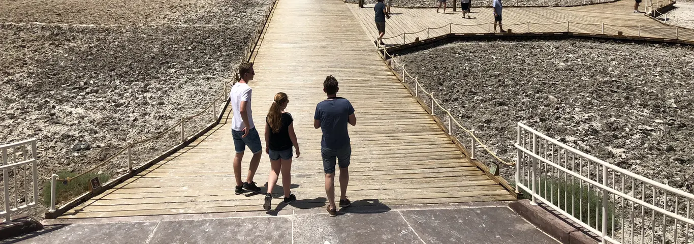 Vervolgens vertrokken we naar Death Valley. Het bekendste deel van Death Valley is het Badwater Basin, een enorme zoutvlakte die 85.5 m onder zeeniveau ligt; het laagste punt van het hele westelijke halfrond. In de zomer kan het makkelijk boven de 50 graden Celcius uitkomen, tijdens ons bezoek was het al 45 graden, maar konden we toch een stukje het zoutmeer oplopen. Death Valley bleek heel divers te zijn, naast de zoutvlakte zijn er ook rotsgebieden in allerlei kleuren, vlaktes die er uitzien als een maanlandschap en woestijnlandschappen met verschillende typen rotsen. En alles weer immens groot en uitgestrekt.