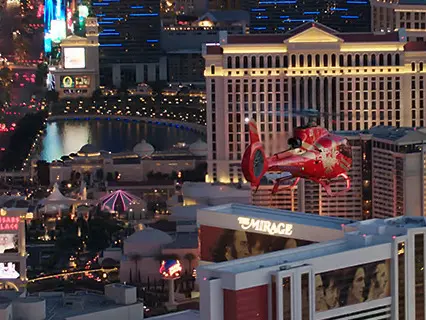Er gaat niets boven de ervaring om de wereldberoemde Las Vegas Strip en Downtown Las Vegas vanuit de lucht te beleven. Je maakt een spannende helikoptervlucht over het verlichte Las Vegas. Bekijk de piramide van het Luxor, de New York-New Yorkse wolkenkrabbers, de Eiffeltoren in Parijs, de fonteinen van het Bellagio en maak een haarspeldbocht rond de 1.000 meter hoge Stratosphere! De vlucht duurt 15 minuten en je ontvangt zelfs een glas champagne.