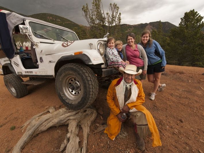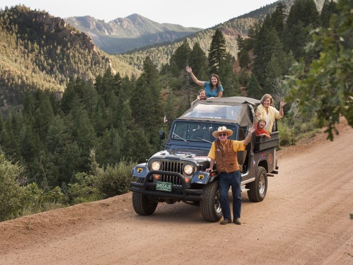 Geniet van de pracht van de historische Old Stage Road vanuit een open jeep. Een cowboygids neemt je mee naar de Old Stage Riding Stables voor een rit van een uur te paard in de bergen! Je voelt je als een ontdekkingsreiziger terwijl jouw paard je door de ruige natuur van het Pike National Forest voert.Misschien zie je zelfs buffels en elanden! Na de rit te paard stap je weer in de jeep. Onderweg ...