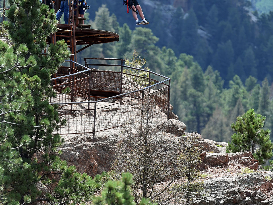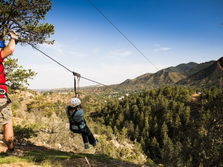 Zweef over dalen tussen de bergen van de Rockies. Je avontuur begint in het hart van Manitou Springs. Een korte rit met een fourwheeldrive brengt je heuvelopwaarts, naar de start van het ziplinen. Het ziplineparcours bestaat uit 5 ontzettend leuke kabelbanen! Je gidsen geven je een harnas, helm en een veiligheidsbriefing en dan is het tijd om te ziplinen!De eerste stap in het niets is het meest sp...