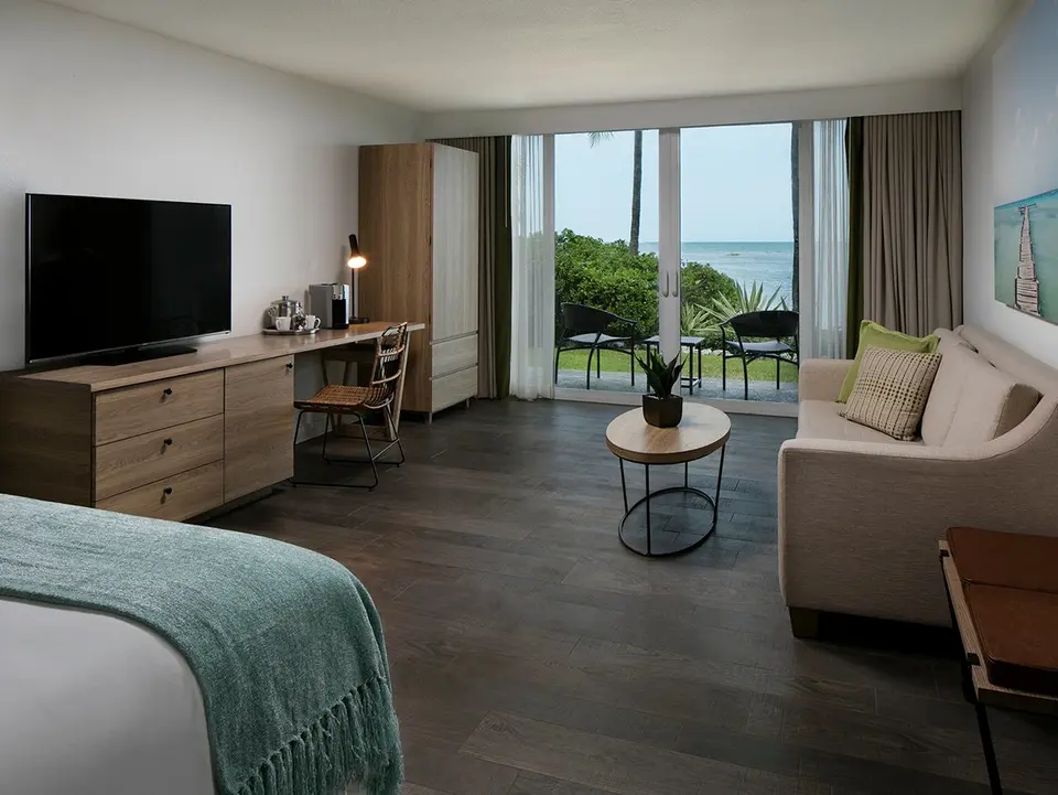 - Ocean Front One Bedroom Suite: een woonkamer met sofabed en aparte slaapkamer met kingsize bed. Vanaf deze kamer heb je een prachtig uitzicht op zee.