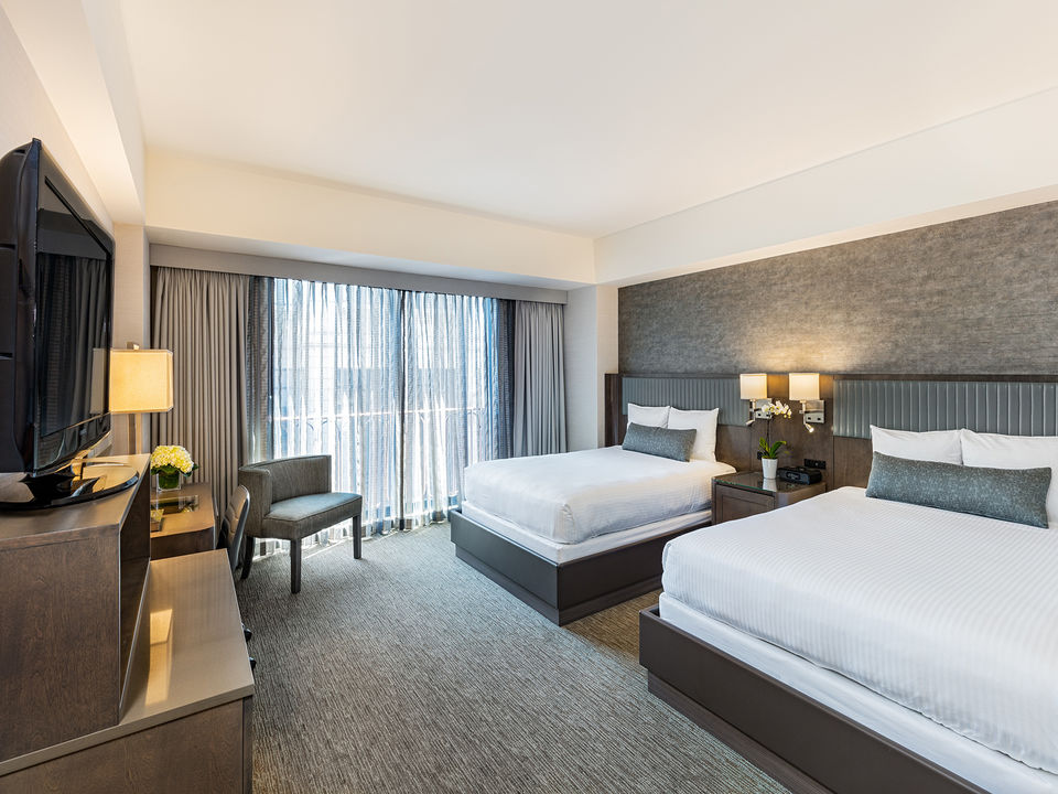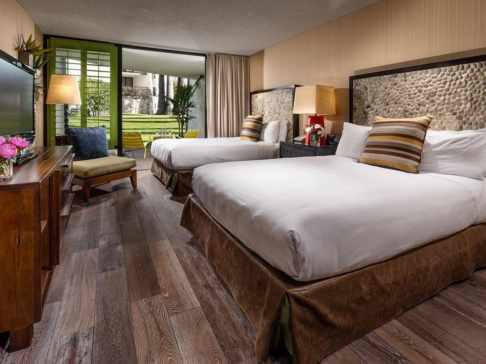 Er zijn veel verschillende kamertypes in dit hotel. De verschillen tussen de kamers zijn niet enorm groot en alle kamers voldoen prima. Geef bij boeking aan of de voorkeur uit gaat naar een kamer met één Kingsize bed (één groot tweepersoonsbed) of naar een kamer met twee Queensize bedden (twee twijfelaars). Deze keuze heb je in bijna ieder Amerikaans hotel. Zowel vier volwassenen als gezinnen met maximaal twee kinderen onder de 12 jaar kunnen bijna in alle hotels in één kamer met twee Queensize bedden verblijven.