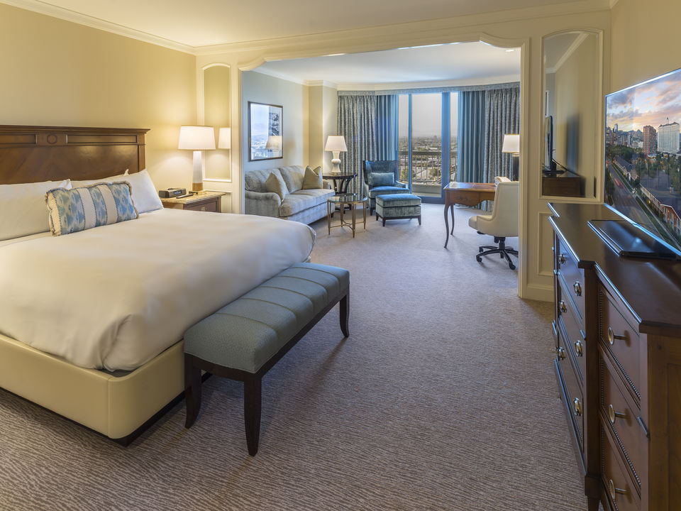 Er zijn veel verschillende kamertypes in dit hotel. De verschillen tussen de kamers zijn niet enorm groot en alle kamers voldoen prima. Geef bij boeking aan of je voorkeur uitgaat naar een kamer met één kingsize bed (één groot tweepersoonsbed) of naar een kamer met twee queensize bedden (twee twijfelaars). Deze keuze heb je in bijna ieder Amerikaans hotel. Zowel vier volwassenen als gezinnen met maximaal twee kinderen onder de 12 jaar kunnen bijna in alle hotels in één kamer met twee queensize bedden verblijven.