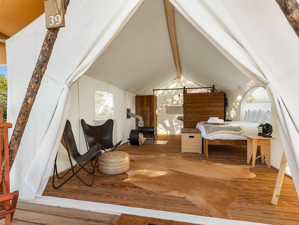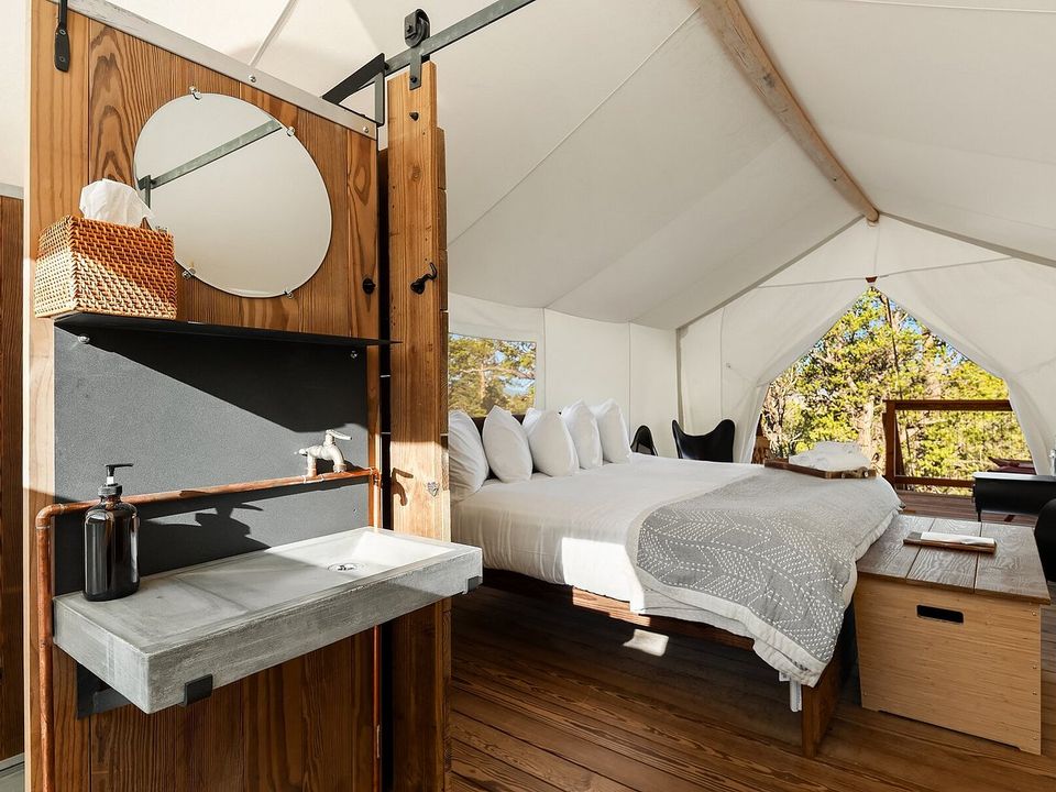 Bij Under Canvas staan luxe safaritenten op houten platforms. In iedere tent staat een kingsize bed, behalve in de Kids Tenten daar tref je 2 eenpersoonsbedden aan. Alle tenten hebben een houtkachel, een eigen badkamer met douche, wastafel en toilet en een eigen terras met loungestoelen.