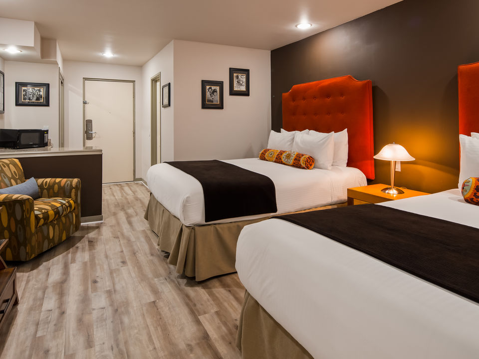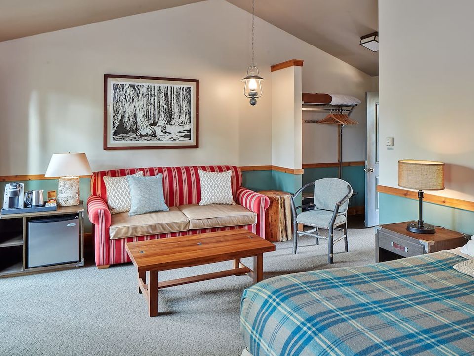 In de suites staat niet alleen een kingsize bed, maar ook een sofa die omgetoverd kan worden tot een queensize bed. En er is een zitgedeelte.