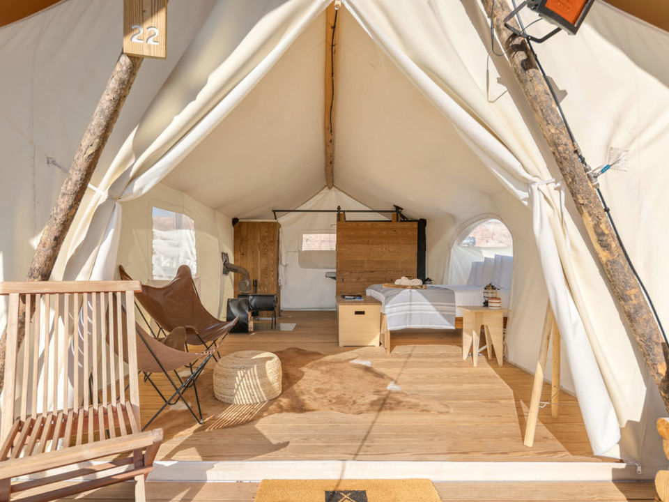 Bijzonder zijn de Stargazer tenten met een dakraam boven het bed om optimaal te genieten van de sterrenhemel.