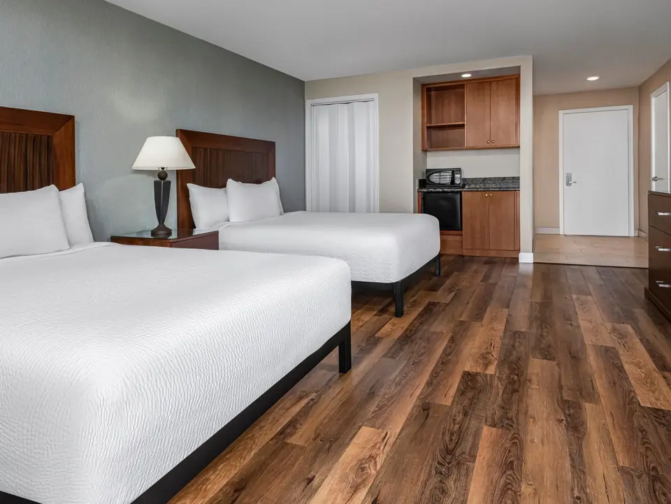 - Deluxe Suites: de Deluxe Suites hebben twee slaapkamers met een queensbed in de eerste slaapkamer en twee doubles (137×191 cm) in de tweede slaapkamer. Er is een badkamer, een aparte woonkamer, meerdere privébalkons aan de oceaan en een kitchenette met een grote koelkast.