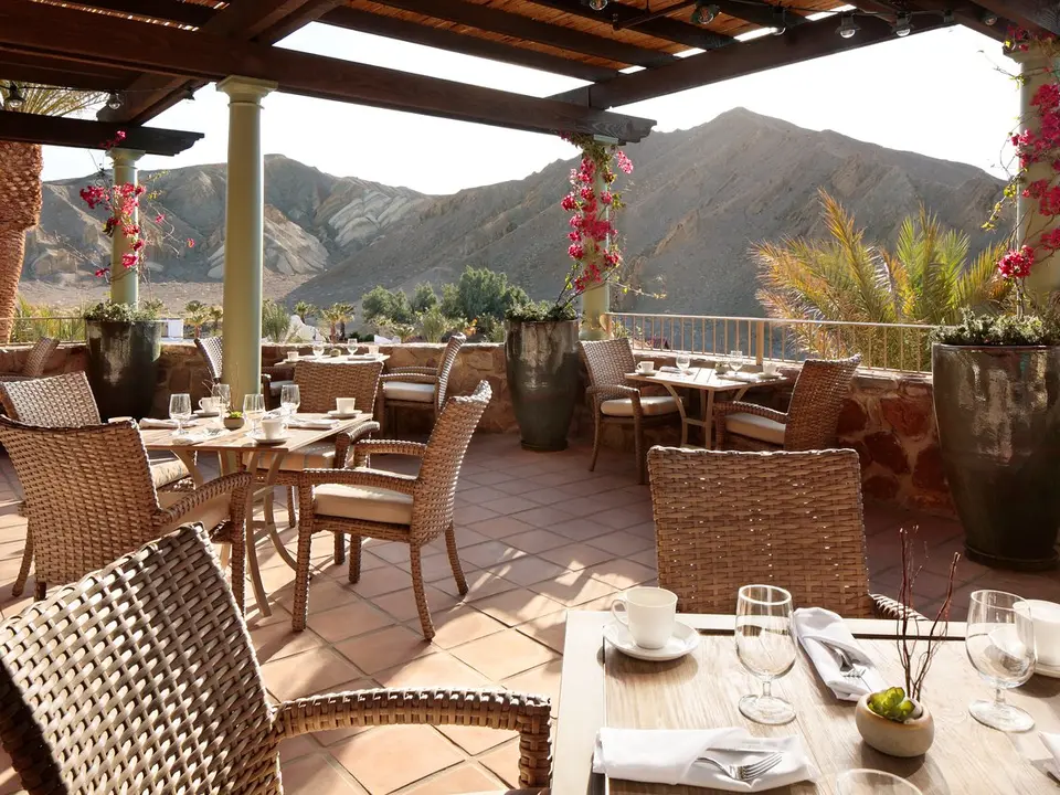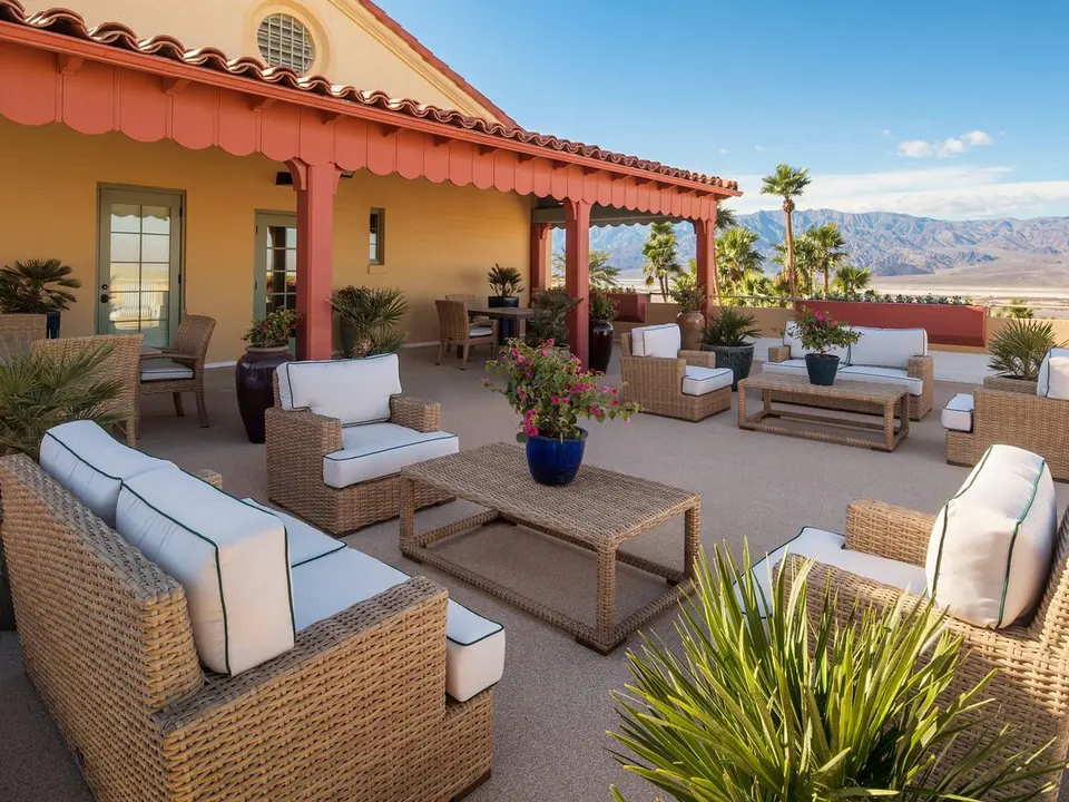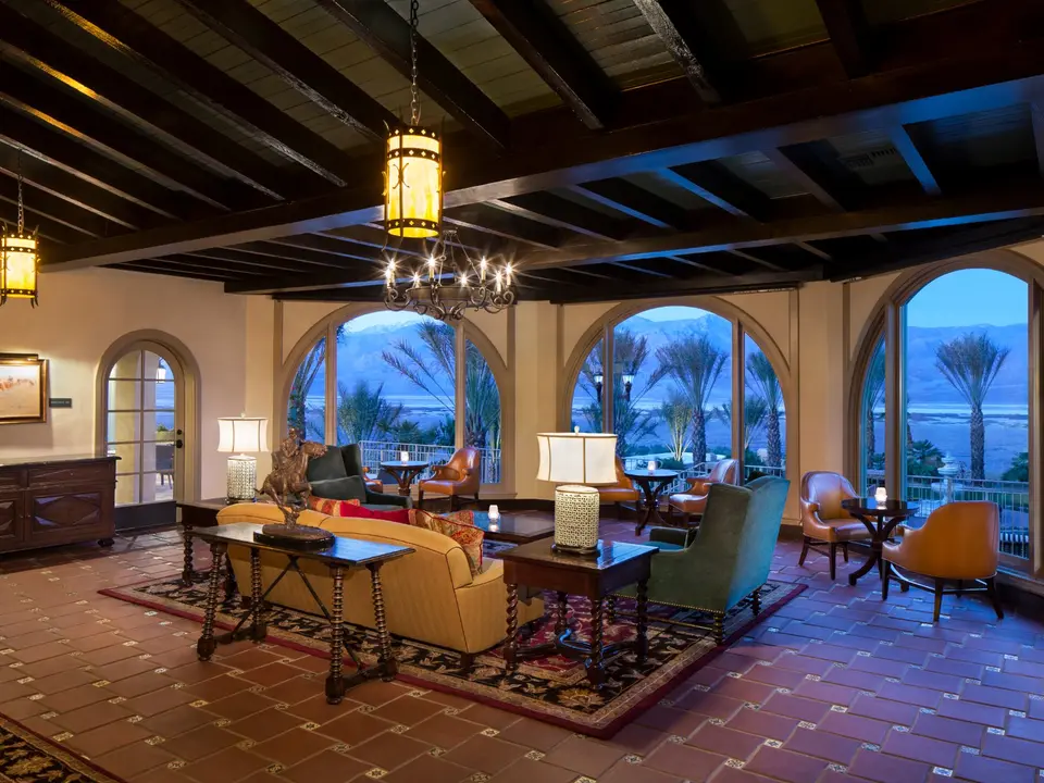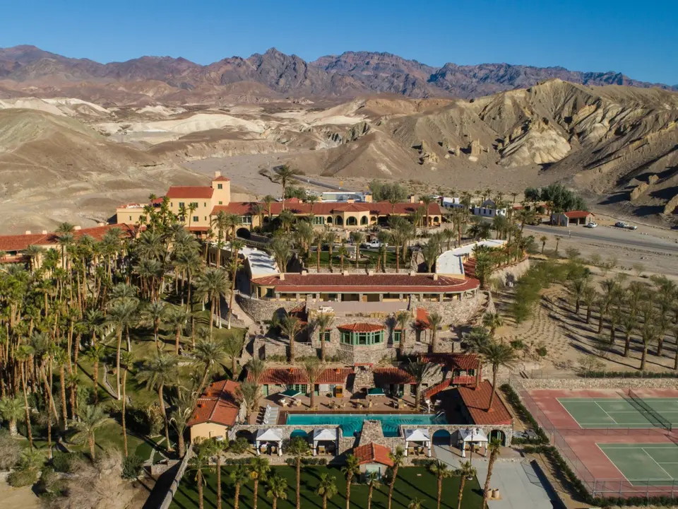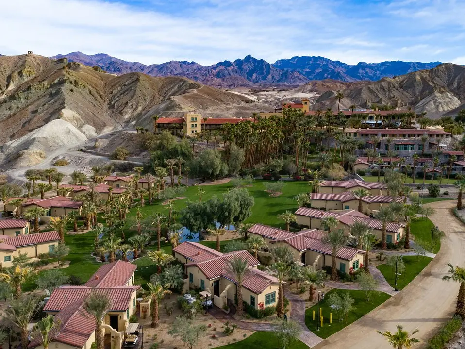 Pool Bungalow: deze bungalow ligt direct aan het zwembad, heeft het beste uitzicht over Death Valley en een luxe inrichting met natuurlijke materialen. Er is één queensize bed aanwezig.