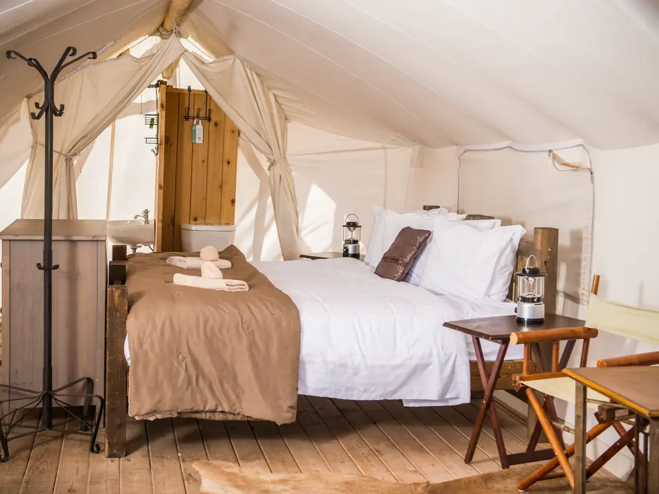 Beddengoed, handdoeken, shampoo en bodywash zijn aanwezig. De tenten hebben geen airconditioning, elektriciteit of wifi. Zonneverlichting met USB-aansluiting is aanwezig.
