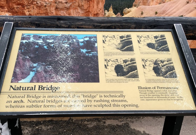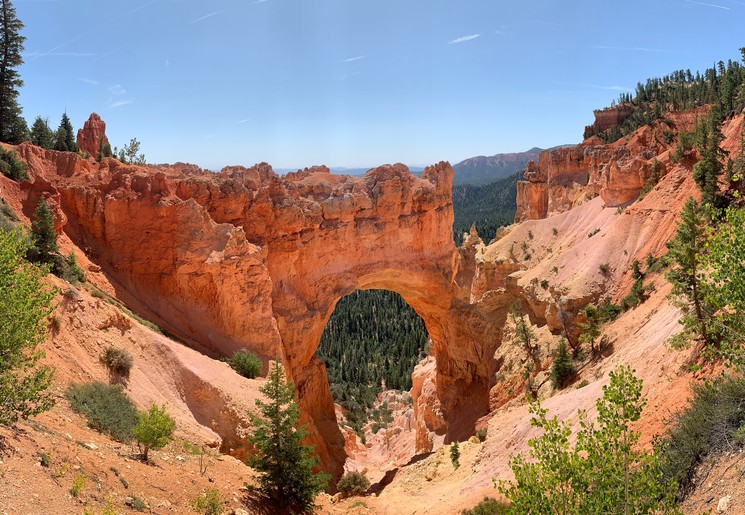 Eén van de mooiste bezienswaardigheden van Bryce Canyon: Natural Bridge. Een natuurlijke boog (eigenlijk geen brug, want u kunt er niet overheen) die is ontstaan door wind, regen en ijsvorming. De boog is 38 meter hoog en heeft een helderrode kleur. Onderaan de boog ligt een groen bos wat een mooi contrast geeft. Nog zo’n fotogeniek stukje van de Rocky Mountains.