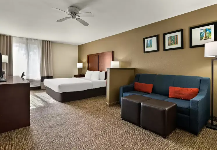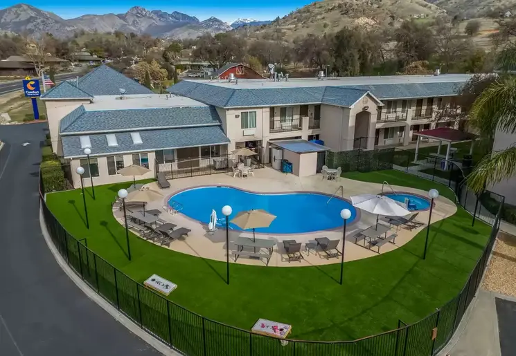 Dichtbij Sequoia National Park ligt Comfort Inn & Suites Sequoia Kings Canyon. Hiervandaan ben je in ongeveer een kwartier bij het park. Sequoia National Park is beroemd om de heel hoge sequoiabomen.