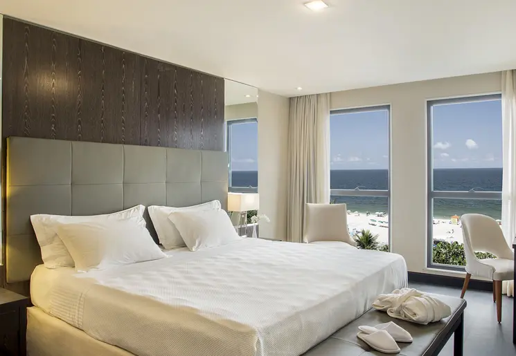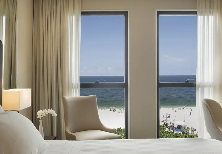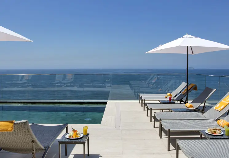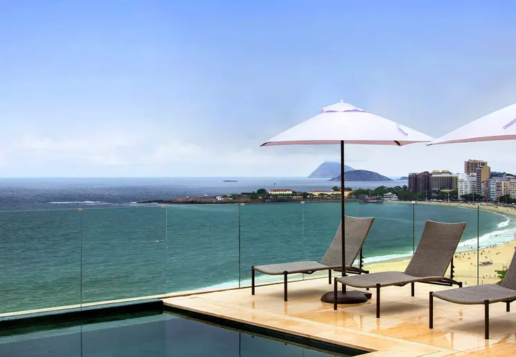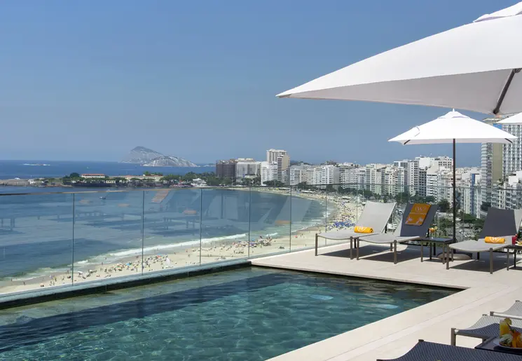 Modern hotel aan het strand van Copacabana met een dakterras met zwembad.