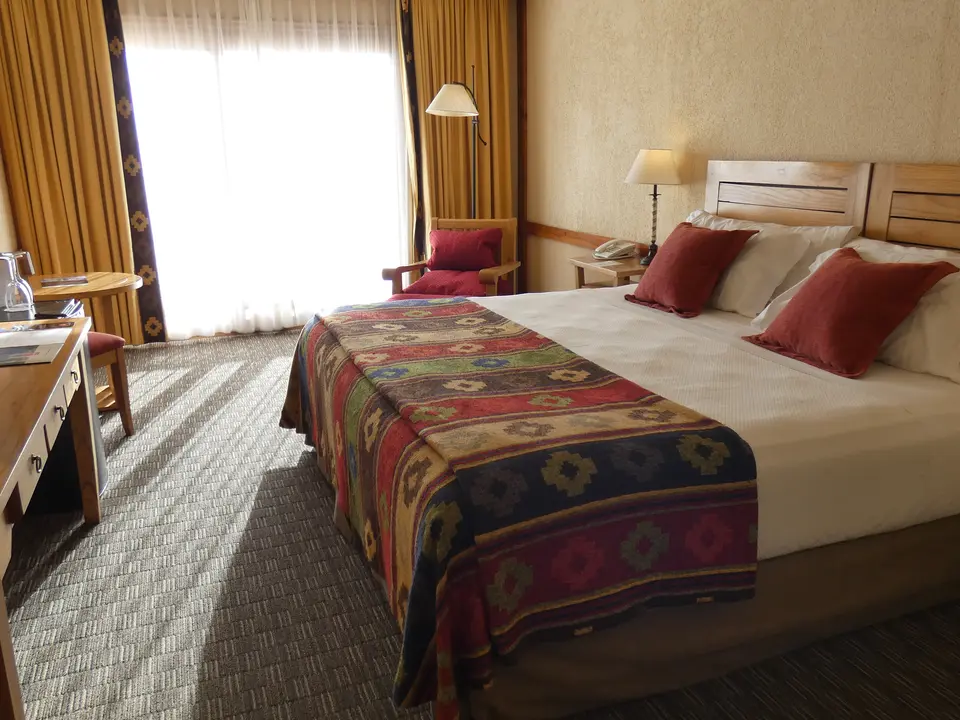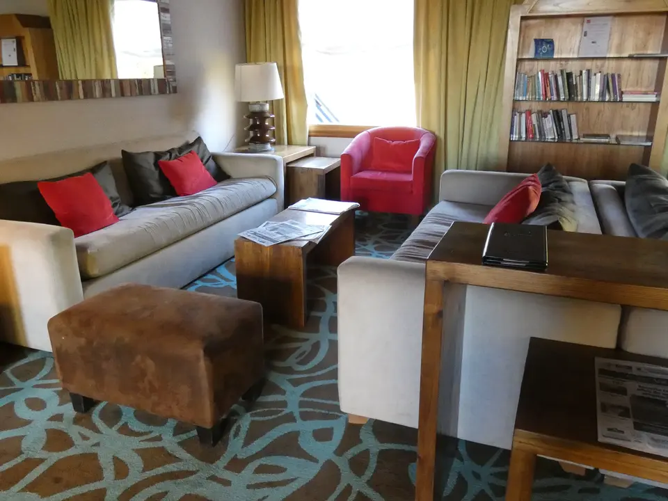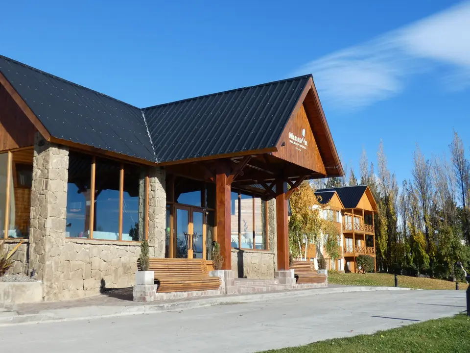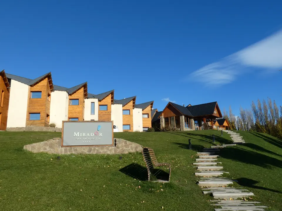 Het hotel Mirador del Lago ligt aan de doorgaande weg van El Calafate naar het Nacional Park Los Glaciares. De weg is niet druk en er ligt er een grasveld voor het hotel: je hebt dus geen last van lawaai van de straat. Aan de voorkant kijkt het hotel uit over Lago de Argentina. Achter het meer rijzen hoge bergen met besneeuwde toppen op. Het centrum van El Calafate, met één hoofdstraat met diverse restaurants, bars en winkels, ligt op ongeveer 250 meter afstand. Je loopt er dus eenvoudig naar toe.
