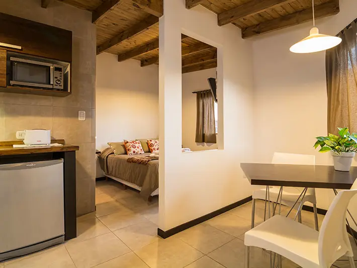 Er zijn tien kamers, alle met eigen badkamer en drie bungalows (cabañas). In alle kamers is verwarming, televisie, een kluisje en een föhn. De kamers en bungalows zijn in lichte tinten ingericht. Op de vloer liggen tegels of hout. De meubels zijn ook van hout. Aan de muur hangen foto’s van Patagonië.