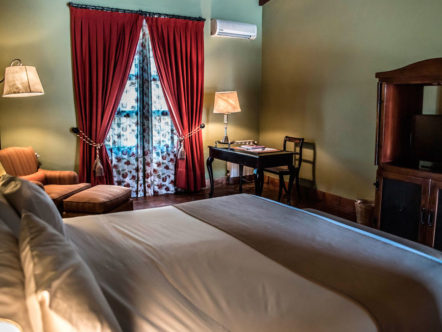 Een schitterend oud gebouw met een toren en een binnenplaats. Het lijkt op een oud klooster. Het is gemaakt van witgeschilderde klei. De inrichting van de kamers is vrij eenvoudig, maar wel stijlvol. Er zijn in totaal twaalf kamers. Op de vloer liggen ouderwetse plavuizen. De muren zijn wit en er is veel gebruik gemaakt van hout. De plafonds zijn ook van hout. De meubels doen antiek aan. Zes kamers kijken uit op de koloniale binnenplaats en zes kamers kijken uit op de omgeving. Er zijn enkele kamers met een tussendeur, ideaal voor families. Op een aantal kamers kan ook een extra bed geplaatst worden. In elke kamer is verwarming en een kluisje. In de badkamer is een douche.