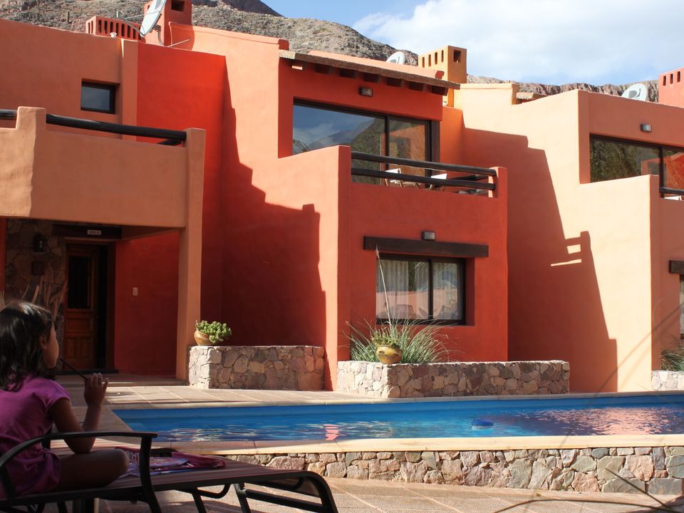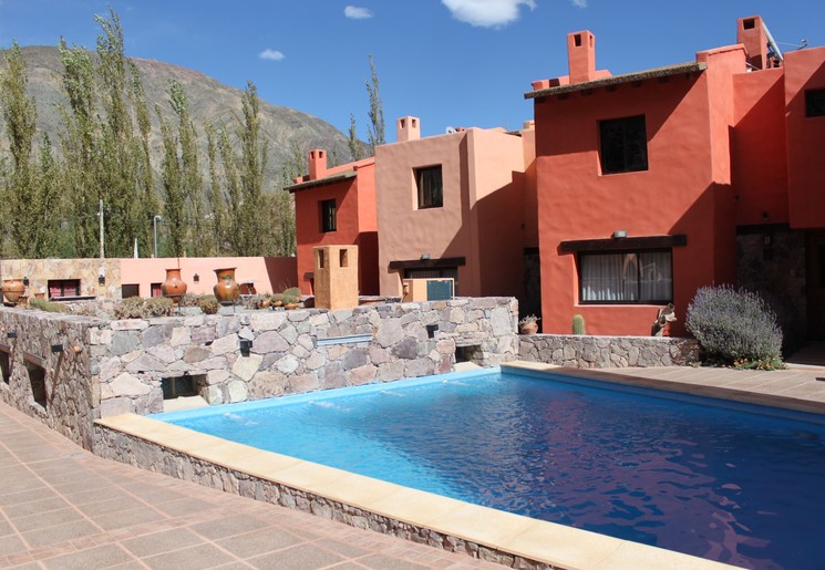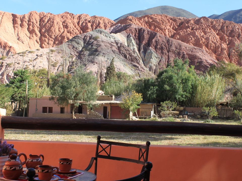 Het complex met kleurige huisjes is gebouwd tegen de kale, maar even kleurige helling van de heuvel met de zeven kleuren. Minder dan een halve kilometer verderop ligt het hart van het dorp Purmamarca met het plein, de kerk en vele stalletjes met souvenirs. Er zijn veel kleine restaurants in het dorp. Vaak is er live muziek. Een gezellige locatie, maar je zit in de rust. Purmamarca betekent stad in de woestijn in de lokale taal, het Aymara. De omgeving heeft zoveel te bieden, verblijf hier enkele nachten!