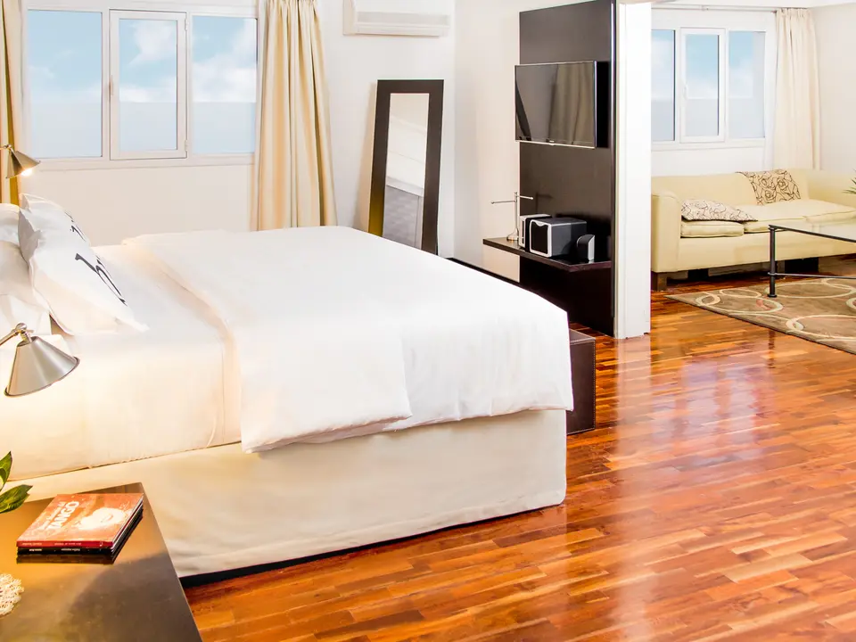 Ruim en licht zijn twee sleutelwoorden om hotel Tolosa te omschrijven. Er is veel gebruik gemaakt van wit: witte vloeren, witte plafonds, witte wanden, veel witte meubels. Er zijn 90 kamers in het hotel. Deze zijn in een combinatie van donker hout en wit ingericht. Op de vloer ligt laminaat of vloerbedekking. De kamers zijn voorzien van airconditioning en verwarming, televisie en een kluisje. In de badkamer is een regendouche en een bad. Er ligt een föhn.