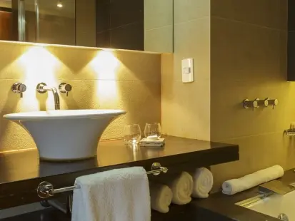 Aparthotel. Er zijn 85 kamers en appartementen, verdeeld over vier verdiepingen. In iedere kamer is televisie, een koelkast en een kluisje. Er ligt laminaat op de vloer. De badkamer heeft een bad.