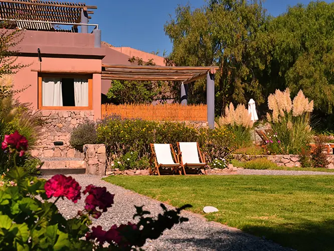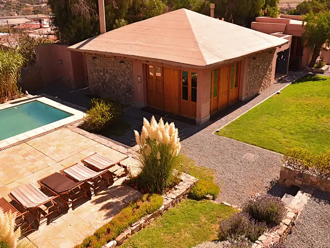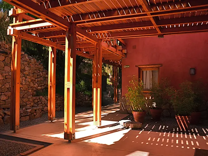 Het hotel is in lokale stijl opgetrokken. Adobe en steen worden gecombineerd en de kleuren doen denken aan de omringende bergen. Het hotel straalt een warme sfeer uit en vormt een eenheid met de omgeving. Er zijn slechts twaalf kamers. Bijna alle kamers hebben een eigen terras of balkon. In iedere kamer is televisie, een kluisje, verwarming en een ventilator. De badkamers zijn ruim en er is een badkuip.