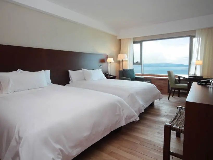 Op de vloeren ligt hardhout uit de nabije omgeving. De inrichting is vrij standaard, niet heel bijzonder, maar je vindt alles wat je nodig hebt in de kamers. Er is voldoende ruimte en er staan twee stoelen in iedere kamer. Er is tevens een bureau. De kamers kijken uit op de stad, de bergen en het Beaglekanaal. De badkamers zijn net zo als het slaapgedeelte ruim opgezet. Er is een dubbele wasbak, een douche en een separaat bad. Er hangt een föhn.