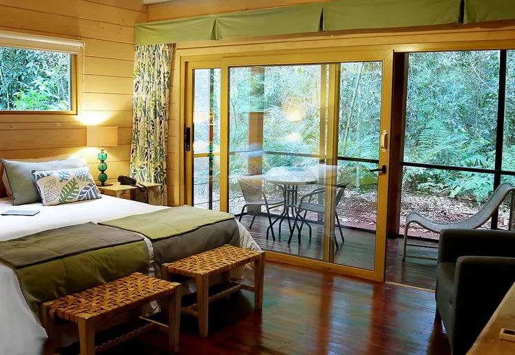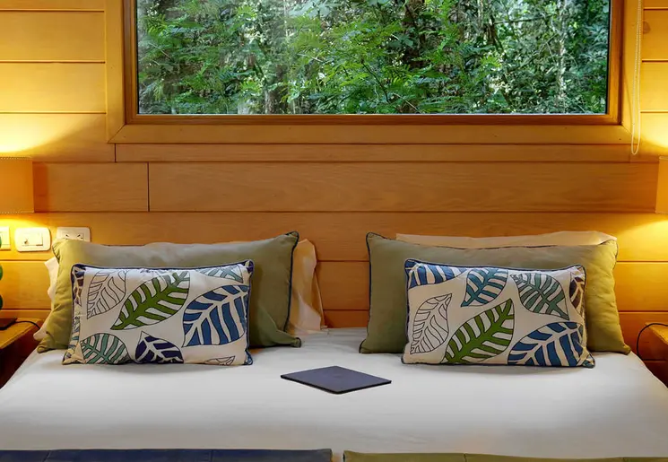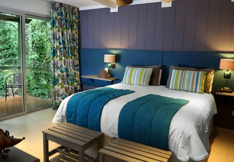 Luxe resort met zwembad en spa in de weelderige jungle aan de rivier.