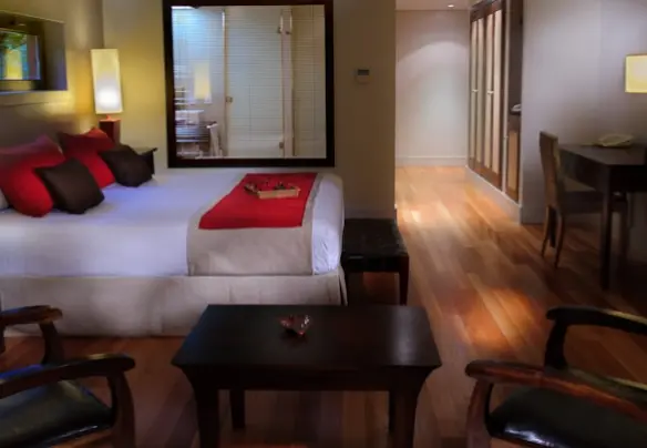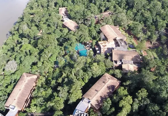 Luxe resort met zwembad en spa in de weelderige jungle aan de rivier.