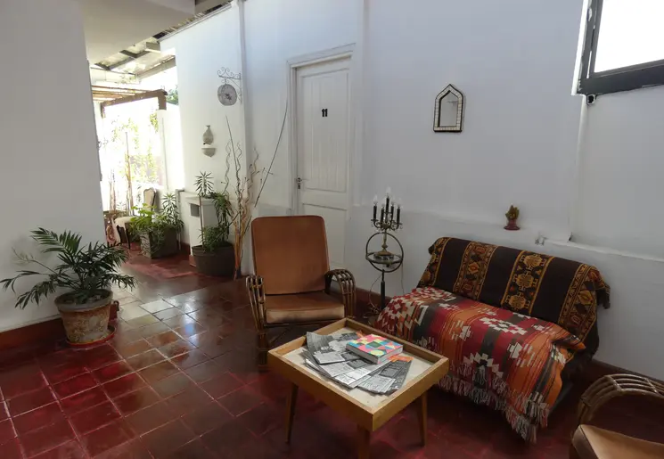 Op weg van Villa Unión naar Cafayate, een fijn en comfortabel hotel in dorp Belén. Simpele kamers maar sfeervolle gemeenschappelijke ruimtes.