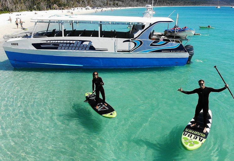Stap aan boord van de snelle power-catamaran. De Whitsundays Bullet schiet je met topsnelheid door dit paradijselijke gebied. Dankzij het stabiele ontwerp van de boot hop je deze dag moeiteloos van de ene adembenemende plek naar de andere. Je gaat zwemmen en suppen bij Whitehaven Beach en maakt een begeleide wandeling naar Hill Inlet, waarvandaan je een prachtig uitzicht hebt over het witte poederzand en turquoise water. Na een lunchbuffet op het strand is het tijd om je onder te dompelen in het onderwaterparadijs van het Great Barrier Reef. Misschien kom je de grote Napoleonvis wel tegen!