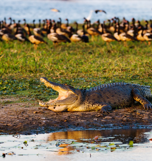 De Yellow Water Cruise is een must-do in Kakadu National Park. Ga zitten en ontspan terwijl je over de Yellow Water Billabong vaart, een zijrivier van de South Alligator-rivier. De South Alligator-rivier is de grootste in het Kakadu National Park en bestaat uit uitgestrekte rivierkanalen, moerassen en overstromingsvlaktes. Ga op zoek naar de unieke zoutwaterkrokodil, buffels en zie ontelbaar veel vogelsoorten. Wist je dat een derde van alle vogelsoorten in Australië voorkomt in Kakadu? Zo kun je bijvoorbeeld de ekstergans, fluitende eenden, de jabiroe (reuzenooievaar), de brolga-kraanvogel en 5 soorten ijsvogels tegenkomen. De tour duurt ongeveer 2 uur.