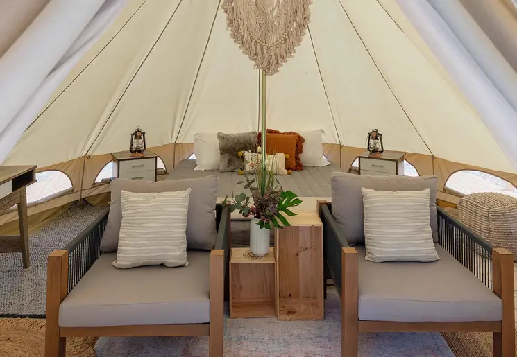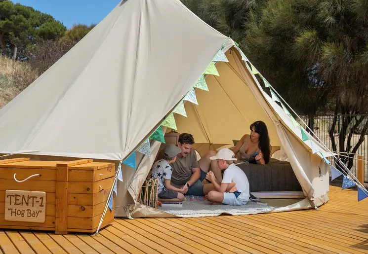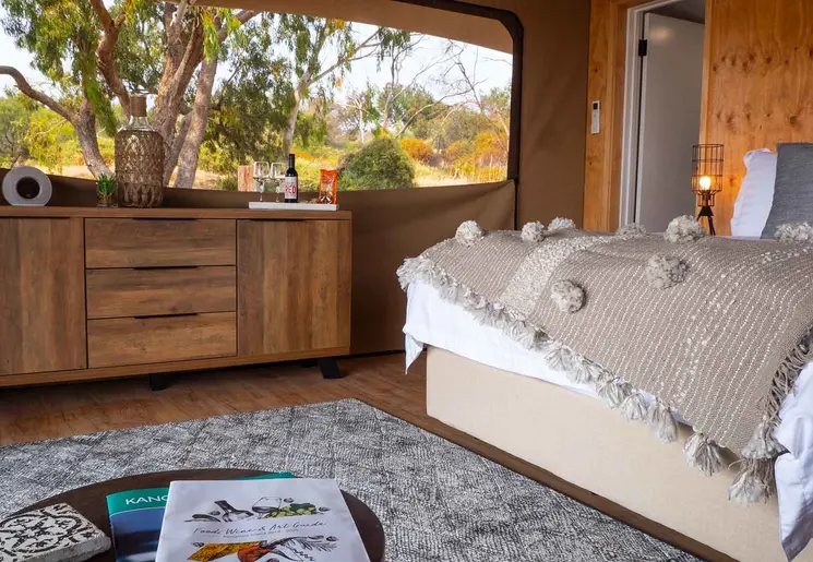 Wil je het echte glampinggevoel in een luxe eco-tent? Of toch iets meer back to basic in een Bell-tent? Het heeft allemaal zijn charme. Op je eigen terras kun je ‘s morgens genieten van je kopje koffie en ‘s avonds van een heerlijk wijntje. Ondertussen kijk je uit over het strand van Hog Bay en de omliggende kustlijn van Kangaroo Island.