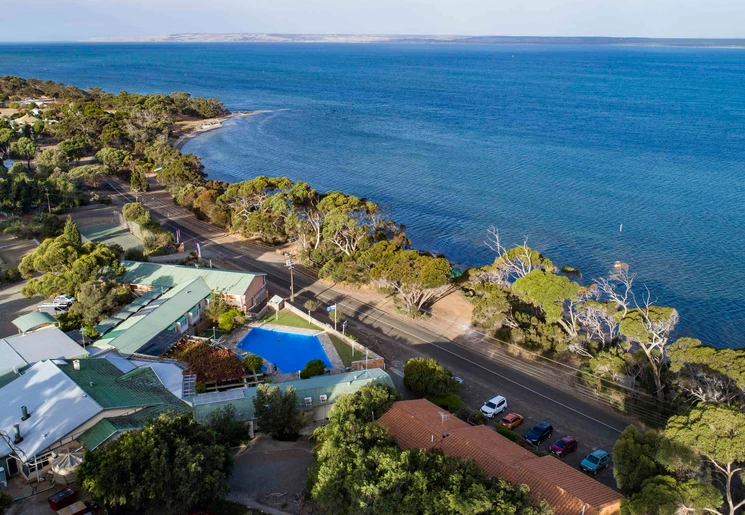 Je rijdt vanaf de terminal naar je hotel op Kangaroo Island.