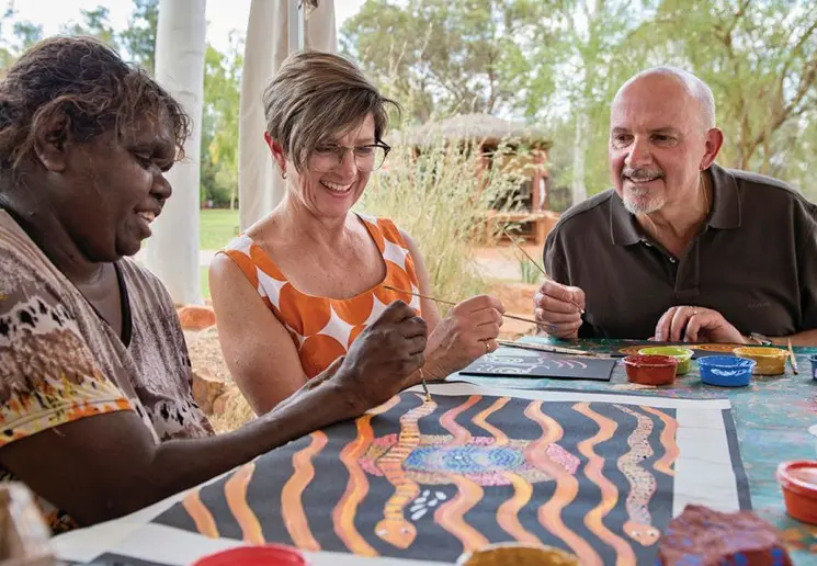 Zoek je iets speciaals en wil je wat meer contact met een Aboriginal? Dan is een mini-cursus, om de lokale schildertechniek onder de knie te krijgen, echt iets voor jou. Leer hoe je de traditionele symbolen prachtig kunt verwerken in je schilderij. Natuurlijk mag je je eigengemaakte kunstwerk mee naar huis nemen om op te hangen. Een leuker souvenir kan je je toch niet voorstellen!