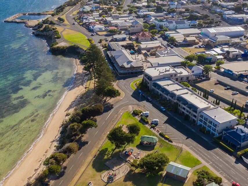 Het hotel ligt aan het strand in de plaats Kingscote op Kangaroo Island. In Kingscote vind je meerdere restaurantjes en winkels. Het is een goede uitvalsbasis voor het verkennen van het eiland. Het is 60 kilometer rijden naar Penneshaw, vanuit waar de boot naar het vaste land vertrekt. De luchthaven van Kingscote is 10 minuten rijden.