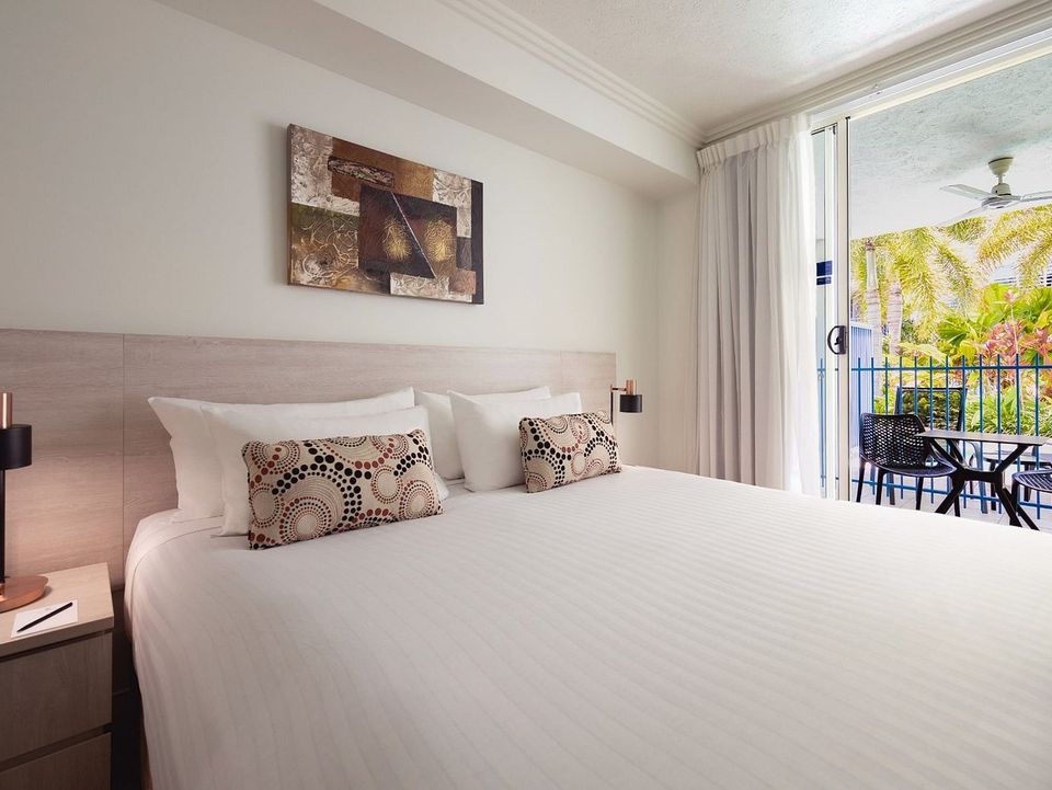 Zes lagunezwembaden slingeren door het resort, sommige kamers grenzen er direct aan. Kies voor een eigen plunge pool, een balkon met spa of de mogelijkheid om vanuit je kamer direct het zwembad in te kunnen duiken. Het lange strand van Port Douglas ligt op vijf minuten lopen. Een fijn resort met een goede prijs-kwaliteit verhouding.