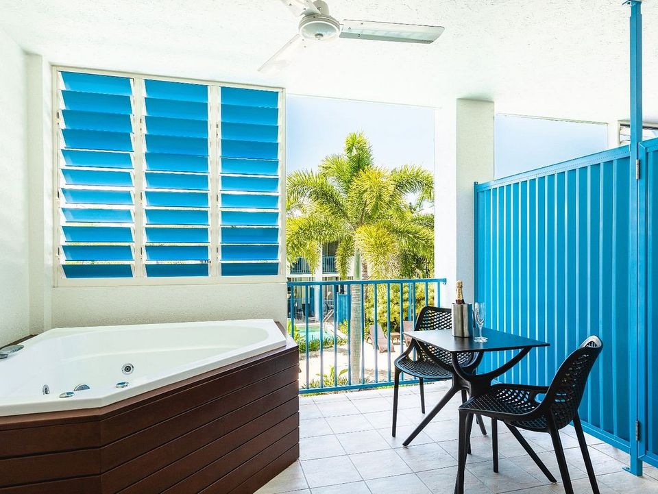 Direct aan het strand in het hart van Palm Cove gelegen, diverse cafés en boutiques op loopafstand. Tropische tuinen en een intiem zwembad met spa. Je slaapt in studio’s en suites met balkon of patio.