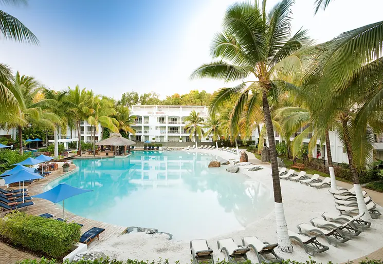 Palm Cove is een klein, knus maar zeker ook paradijselijk plaatsje met een prachtig lang zandstrand dat, zoals de naam al zegt, wordt versierd met ontelbaar veel palmbomen. De resorts liggen vrijwel allemaal op een steenworp afstand van het strand en de bruisende Esplanade, een lange boulevard langs het strand met smaakvolle boetiekjes en talloze goede restaurants en cafés.