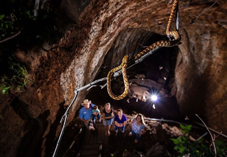 Het zien van Australische wilde dieren, zoals kangoeroes en wallaby’s, kleurrijke kaketoes en lorikeets en andere dieren in het wild in hun natuurlijke omgeving blijft een mooie ervaring. Tijdens deze tour neemt de gids je mee de natuur in op zoek naar de dieren terwijl hij alles vertelt over het land. Geniet tijdens een magische zonsondergang over de outback van een mousserende wijn (of ander drankje) met kaas en fruit en eindig de tour met een waar spektakel bij de ingang van de lavatunnels. Bij schemer komen namelijk duizenden kleine insectenetende microvleermuizen uit de duisternis tevoorschijn om voedsel te zoeken. In de warmere maanden hangen pythons en bruine boomslangen aan de takken van de bomen. De slangen halen uit naar de vleermuizen om een maaltijd te veroveren.