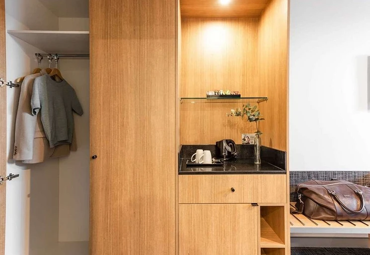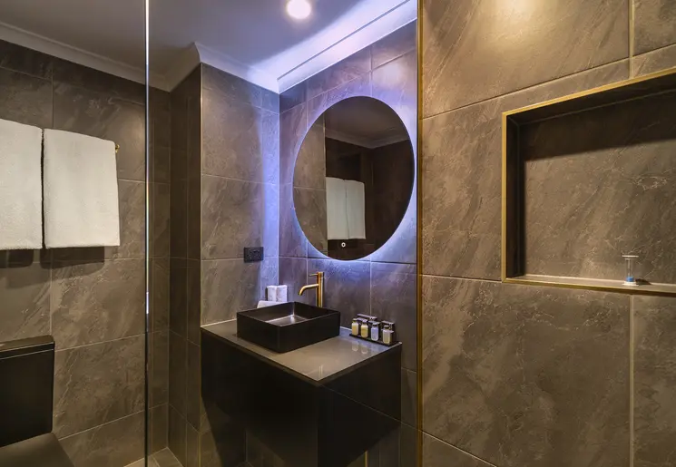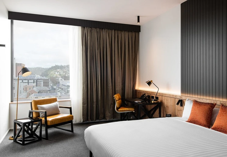 Modern, luxe hotel. Industriële, maar ook chique en warme uitstraling. Het gebouw is nieuw, maar gaat door de slimme architectuur en rode bakstenen heel mooi op in de industriële, historische panden in de omgeving. In Tasmaans eigendom en onder Tasmaans beheer. Een smaakvolle keuze voor een verblijf in het centrum van Launceston.