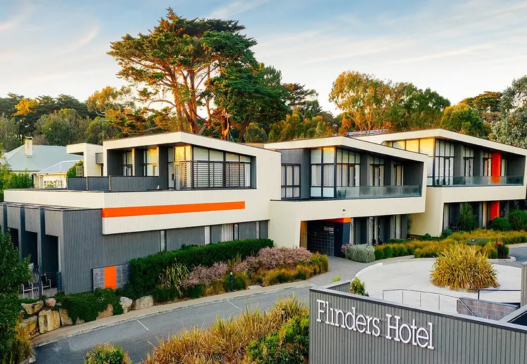 Zelfs in luxe ontsnappen aan het leven van alledag. Dat kan in het Flinders Hotel op het Mornington schiereiland. Stijlvol en modern hotel met goed restaurant.