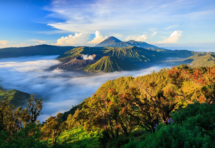 Eén van de mooiste vulkanen van Azië vind je op het Indonesische eiland Java. Met een hoogte van 2.329 meter is het de meest iconische en meest bewandelde berg in Indonesië. De vulkaan bevindt zich tussen twee andere vulkanen en is omgeven door een spectaculair maanlandschap.