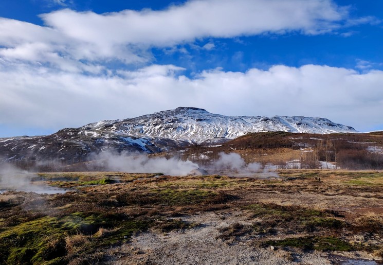 Onze volgende stop was Geysir, een geothermisch actief gebied. We waren onze camera’s net aan het instellen toen de Strokkur-geiser meters hoog de lucht in spoot. Net te laat! De geiser barst om de zoveel minuten uit, dus in spanning wachtten we tot de volgende uitbarsting. Het was het wachten zeker waard: na een paar minuten spoot de geiser zelfs vier keer achter elkaar hoog de lucht in. Wat een prachtig gezicht!