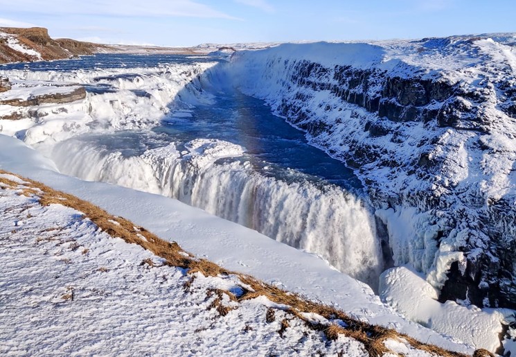 Een echte must tijdens een stopover IJsland: een bezoek aan de Golden Circle. Ook tijdens onze rondreis mocht de Golden Circle natuurlijk niet ontbreken. Met onze huurauto vertrokken we al vroeg, er staat namelijk veel op onze planning vandaag. Net buiten Reykjavik verandert het landschap al snel en wil je na elke bocht weer stoppen voor foto’s. We kwamen er al snel achter dat we niet voor het donker in Vík aan zouden komen als we zo vaak zouden stoppen. Na twee fotomomenten reden we in één keer door naar het Thingvellir National Park, waar het door het ijs een leuke en avontuurlijke uitdaging was om zonder te vallen de waterval te bereiken. Mijn tip: zorg dat je goede wandelschoenen meeneemt met veel grip of koop spikes (sneeuwijzers) voor onder je schoenen.