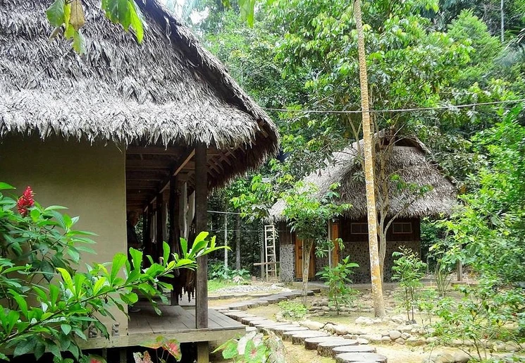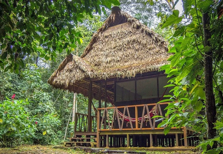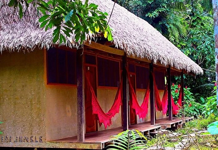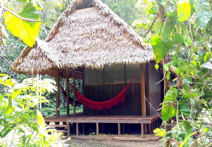 Rond het middaguur kom je aan bij de ecolodge en neem je intrek in een eenvoudige, traditionele hut. Na de lunch kun je even uitrusten in een hangmat, met uitzicht op de jungle.