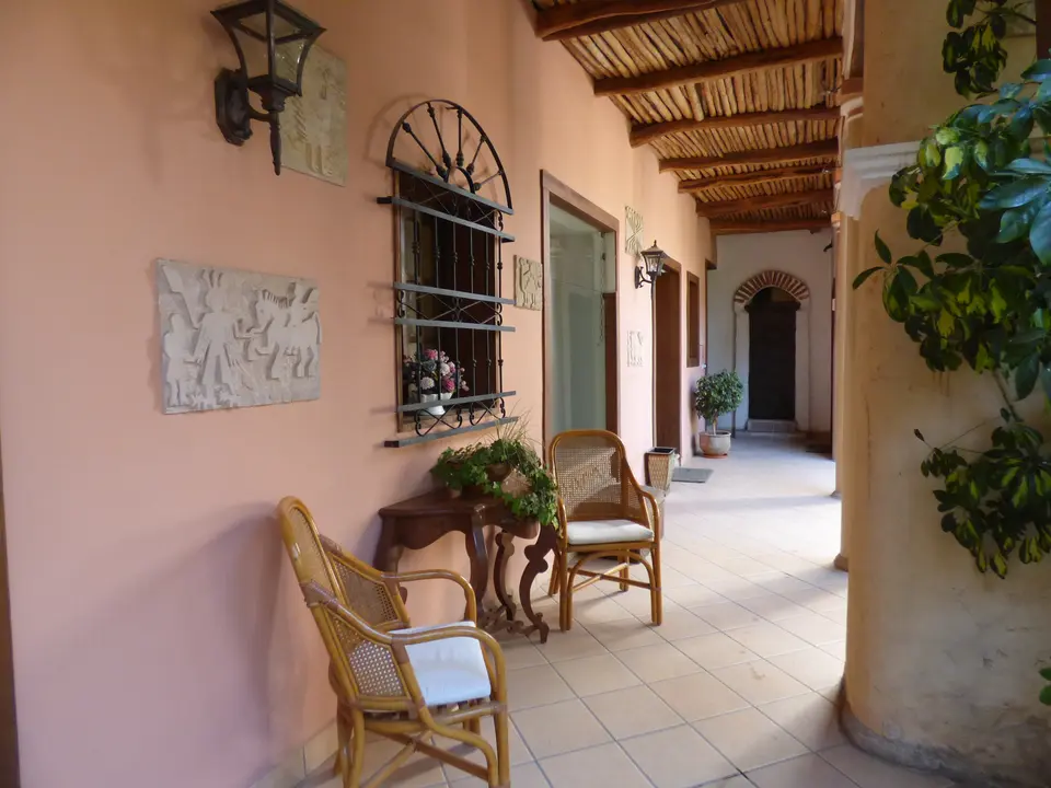 Centrale ligging. Het hotel ligt aan een doorgaande weg, maar omdat de kamers rond een patio liggen en niet aan de weg, heb je geen geluidsoverlast van het verkeer. Het hotel ligt in het oude koloniale centrum. Je loopt in ongeveer een kwartier naar het centrale plein. Ook vele restaurants en winkels liggen op loopafstand. Naar een supermarkt of de lokale markt loop je ook zo toe.