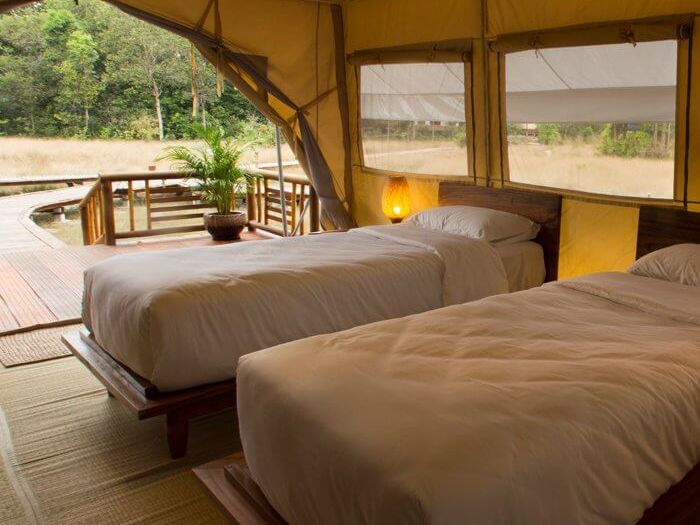 Glamping in de weelderige natuur van de Cardamom bergen. Je verblijft in een comfortabele safari-tent en draagt gelijk een steentje bij aan het behoud van de natuur in dit gebied. Een deel van de opbrengst van je verblijf wordt gebruikt om dit gebied te behoeden voor houtkap, zandwinning en om de dieren te beschermen tegen stropers.