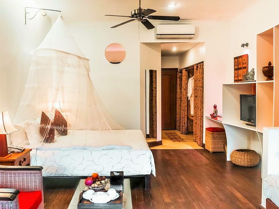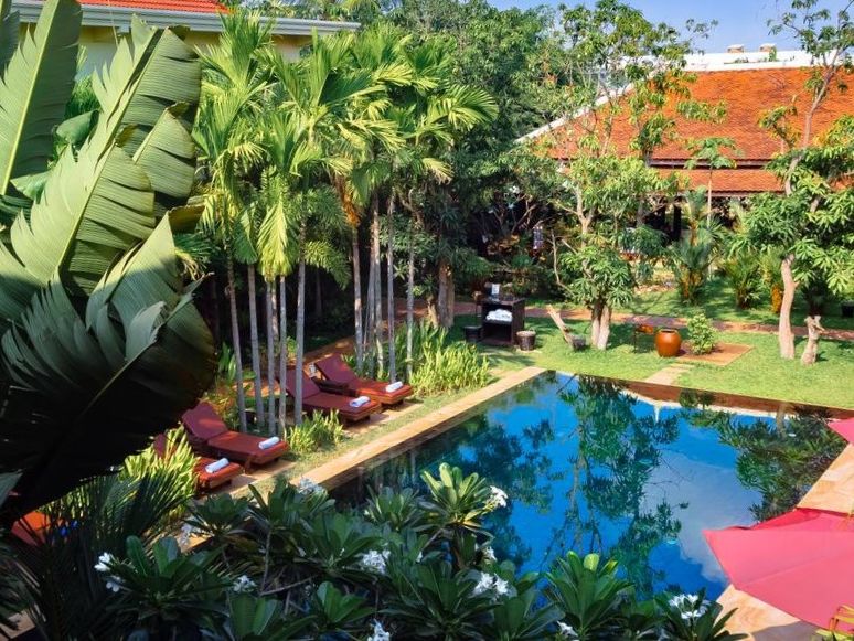 Wat een plaatje! Dit hotel is gevestigd in vier gebouwen dat veel weg heeft van koloniale herenhuizen. Dit kleinschalige hotel heeft een weelderige tuin met twee zwembaden. Een oase van rust in bedrijvig Siem Reap, en een zeer goede uitvalsbasis voor een bezoek aan de tempels van Angkor.