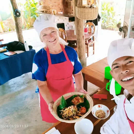 De Cambodjaanse keuken lijkt op de Thaise, maar minder pittig. Rijst en noedels vormen de basis, veelal aangevuld met groenten, vis en/of kip. Een typisch Cambodjaans gerecht is ‘amok’; een viscurry vaak geserveerd in een bananenblad. Probeer ook eens de met groenten gevulde soep ‘Khmer sour’.