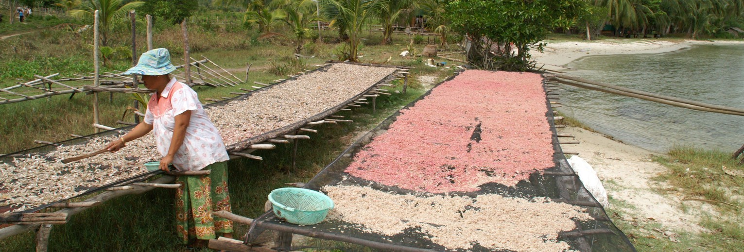 Kampot is beroemd om twee producten: zout en peper! Op het platteland buiten Kampot laat men uitgestrekte velden vol lopen met zout zeewater, om de zon daarna zijn werk te laten doen. Als het water verdampt is, blijft het zout over dat dan in bergjes bijeen wordt geharkt. Bijzonder om te zien. Naast zout staat er altijd ook peper op tafel. Naar zeggen groeien de beste pepers in deze regio. Bezoek een peperplantage, wandel langs rijen peperplanten en leer meer over deze beroemde pepers uit Kampot.