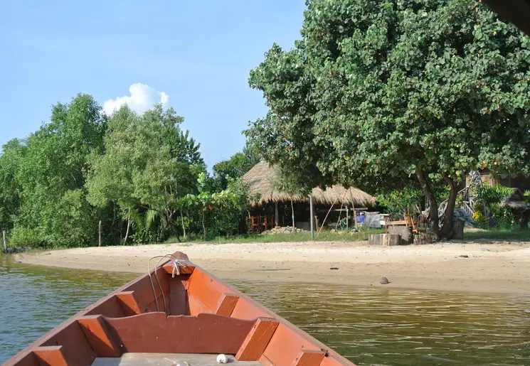 Je meldt je bij het ticketkantoor bij de pier in hartje Sihanoukville. Daar wissel je je voucher om voor een retourticket. De ferry doet meerdere baaien aan. In welke volgorde? Dat wordt op het moment zelf besloten. De duur van de overtocht is daardoor vooraf niet precies aan te geven. Het zal tussen een half uur en 1 uur zijn.