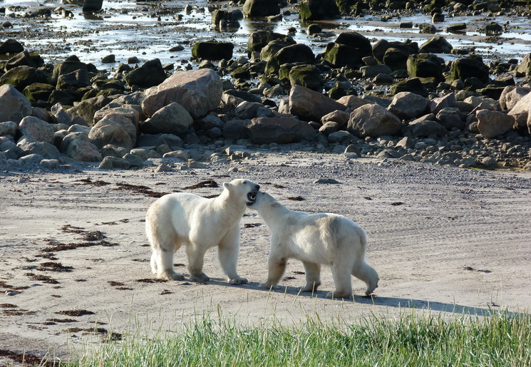 Andy en Terry hebben echt een passie voor ijsberen en ze weten ontzettend veel leuke verhalen en weetjes te vertellen. En gelukkig… hun geweer hebben ze in de jaren dat ze hier werken nooit hoeven te gebruiken. Bij een enkel waarschuwingsschot is het gebleven. We hebben geluk! Tijdens diverse wandelingen komen we ijsberen tegen. Wat voel je je dan nietig. Behalve ijsberen is er nog meer dierenleven te zien. Vogels vliegen over, een kikkertje verschuilt zich in een poeltje met water. Een soort marmot gaat op zijn achterpoten staan en steekt zijn koppie boven het gras uit. En als je mazzel hebt, zie je een witte poolvos op jacht naar een prooi. Wolven, elanden, rendieren en zelfs zwarte beren komen hier ook voor.
